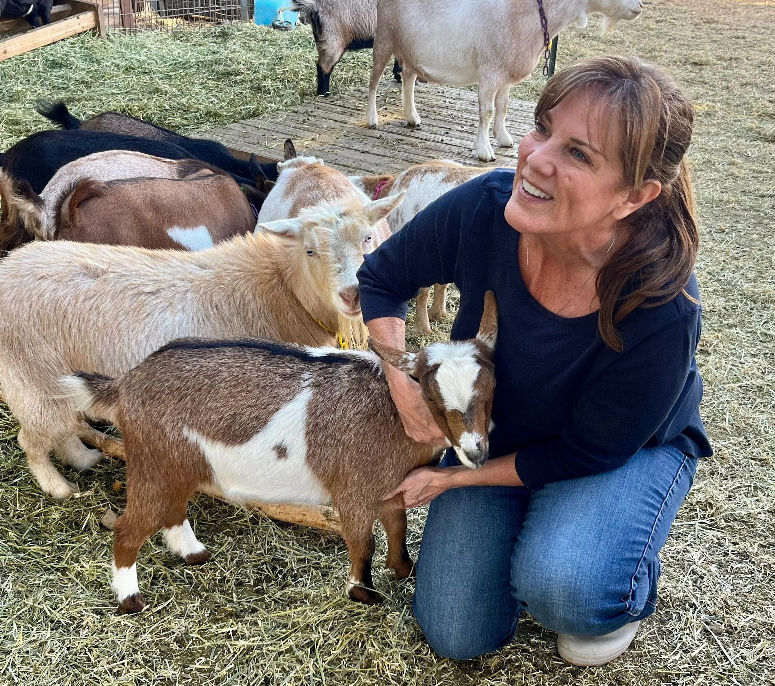 Linda has loved goats since she was a child, growing up around ranch life with a father who was a cattle rancher and had a mischievous goat who was always stirring up trouble. Years later, she found her way back to the farm by volunteering as a “milk maid” at Oats & Ivy Farm in Somis, California—an experience that sparked the inspiration for the Spuddy and Biscotti book series.
